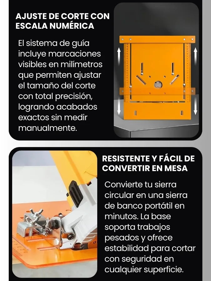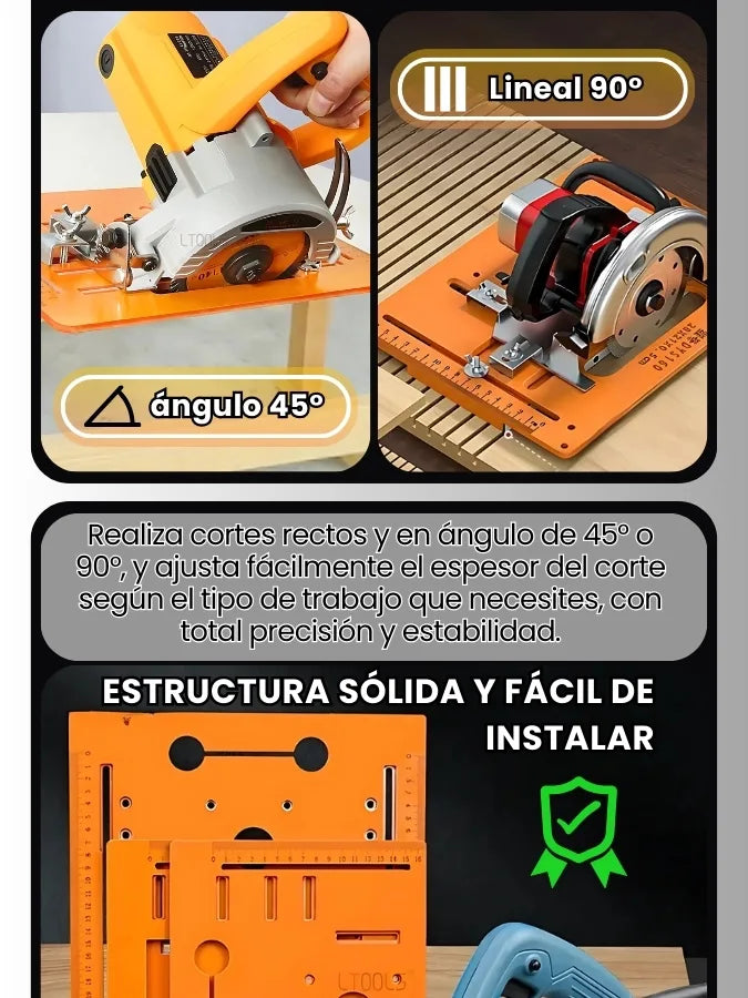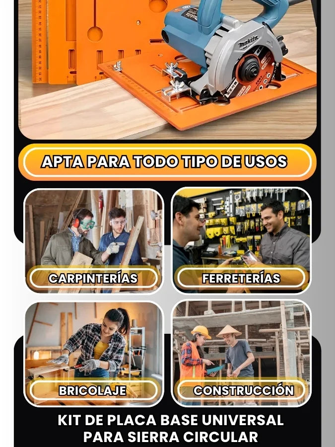 Es ideal para cortar madera, MDF, aglomerados, melamina y otros materiales blandos o semiduros usados en carpintería y hogar.