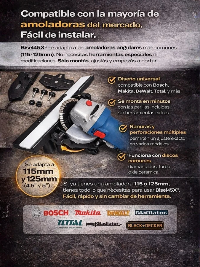 ¿Con qué tipo de amoladora es compatible el Bisel45X®?