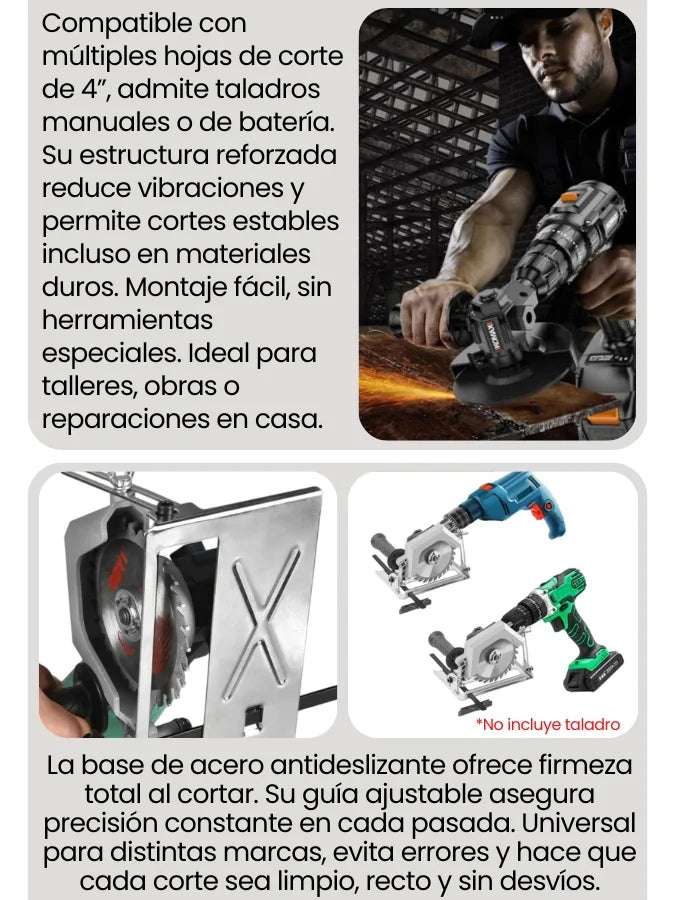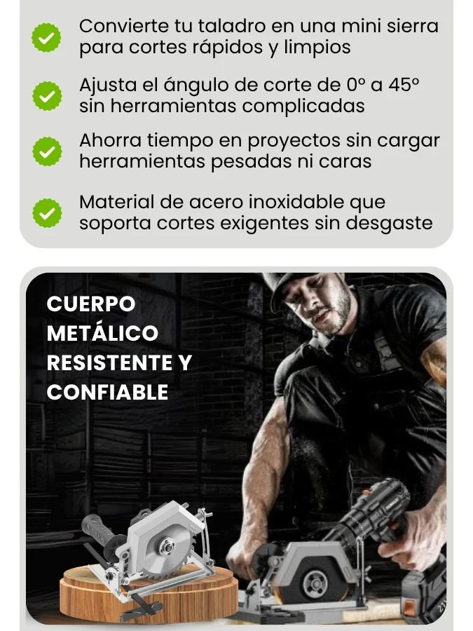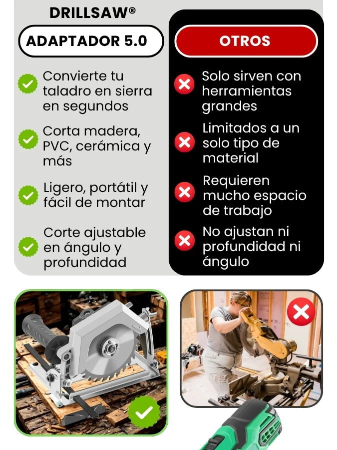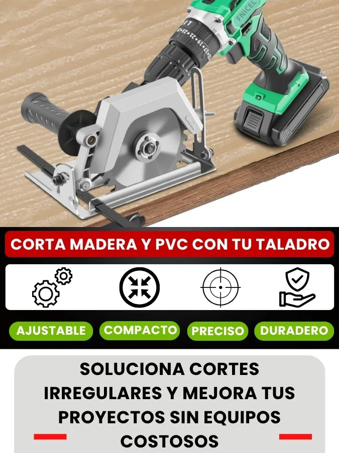 Sí, DrillSaw® se adapta a la mayoría de taladros eléctricos y de batería con mandril estándar. Solo necesitas un taladro con potencia suficiente para cortar.