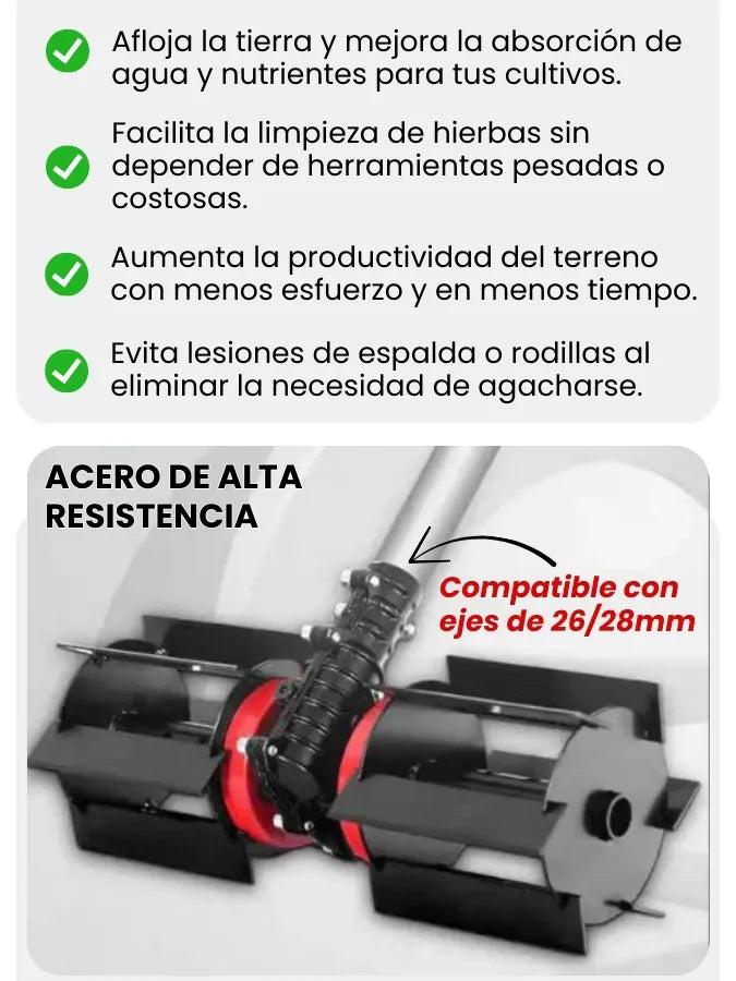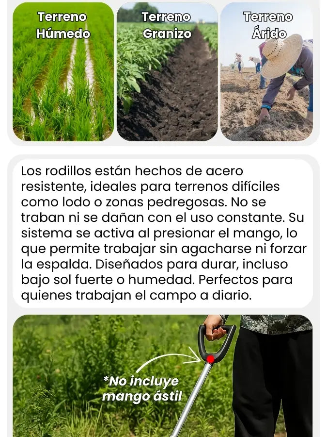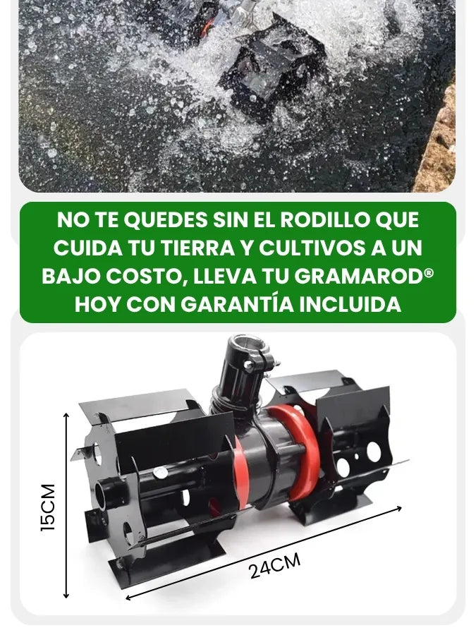 GramaRod® es un rodillo desbrozador que elimina maleza, afloja la tierra y ayuda a preparar el terreno para siembras de forma rápida y sin esfuerzo. Se adapta a desbrozadoras compatibles.