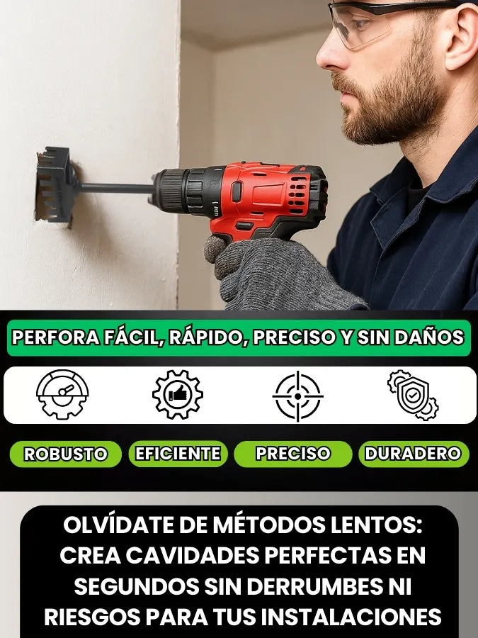 La broca ha sido mejorada y tiene 6 dientes reforzados que permiten cortes precisos y un encaje perfecto para cajas eléctricas tipo 86 o similares.